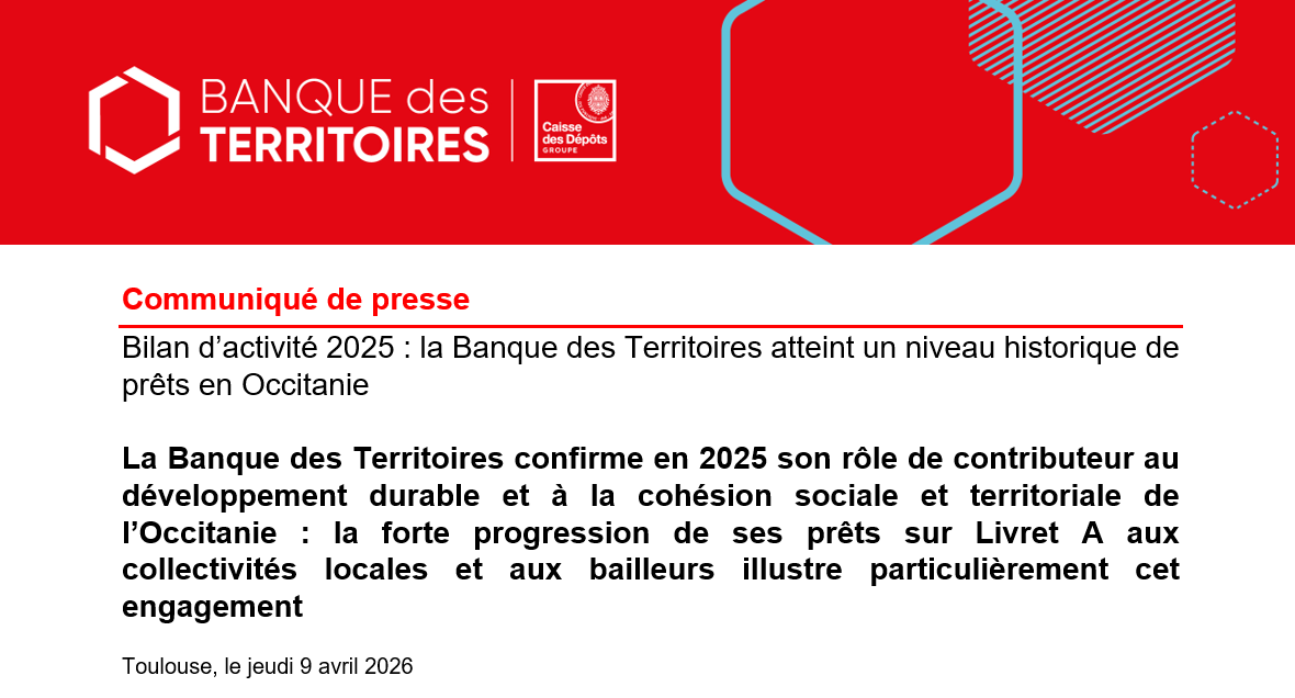 Bilan d’activité 2025 : la Banque des Territoires atteint un niveau historique de prêts en Occitanie