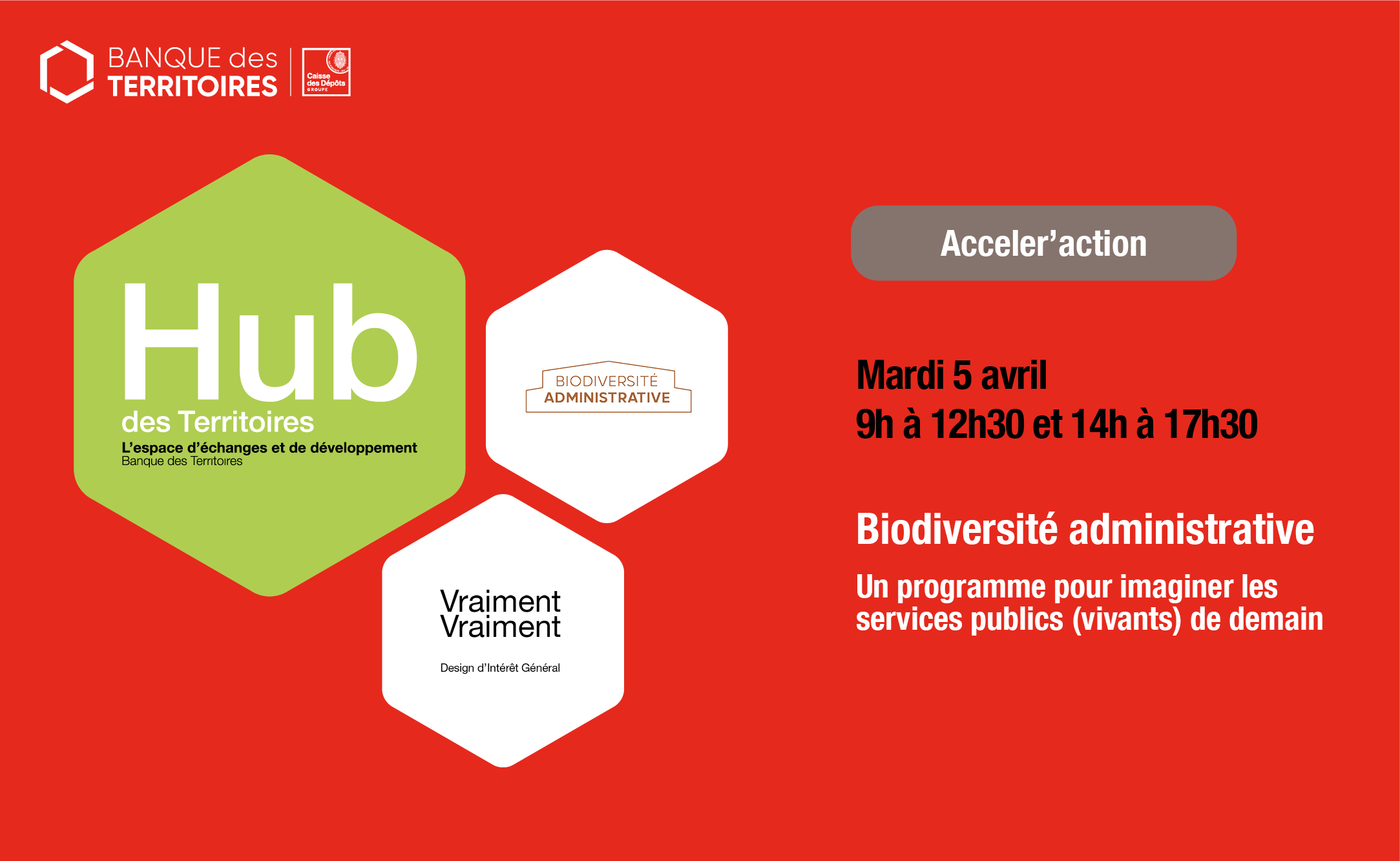 Dans le cadre du programme Biodiversité Administrative, la Banque des Territoires et Vraiment Vraiment, vous proposent ce mardi 5 avril 2022, se tiendra le premier opus de cette série d’ateliers de co-conception. Il réunira des collectivités de tout le territoire, et des partenaires institutionnels pour discuter des premiers enseignements et commencer à imaginer ces objets administratifs de la biodiversité.
