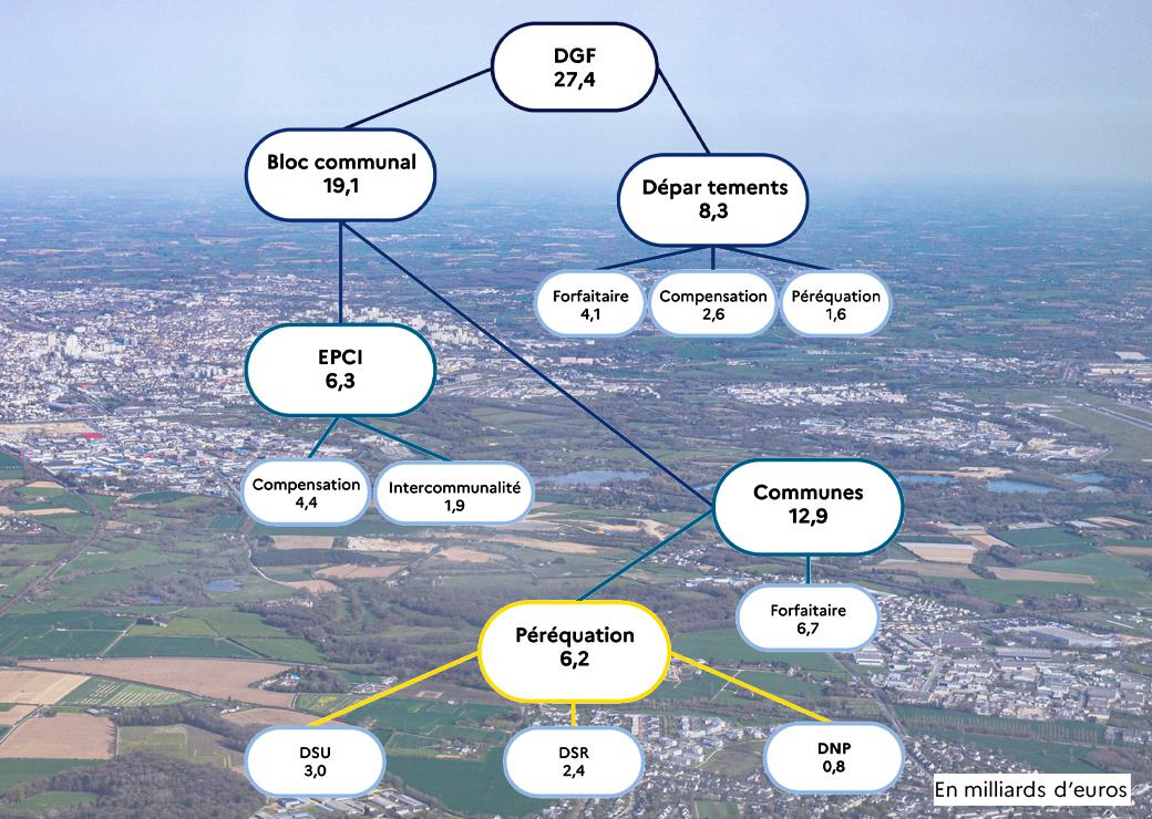 La DGF s'élève cette année à 27,4 milliards d'euros. Les communes et groupements se voient affecter 19,1 milliards d'euros, tandis que 8,3 milliards sont destinés aux départements.