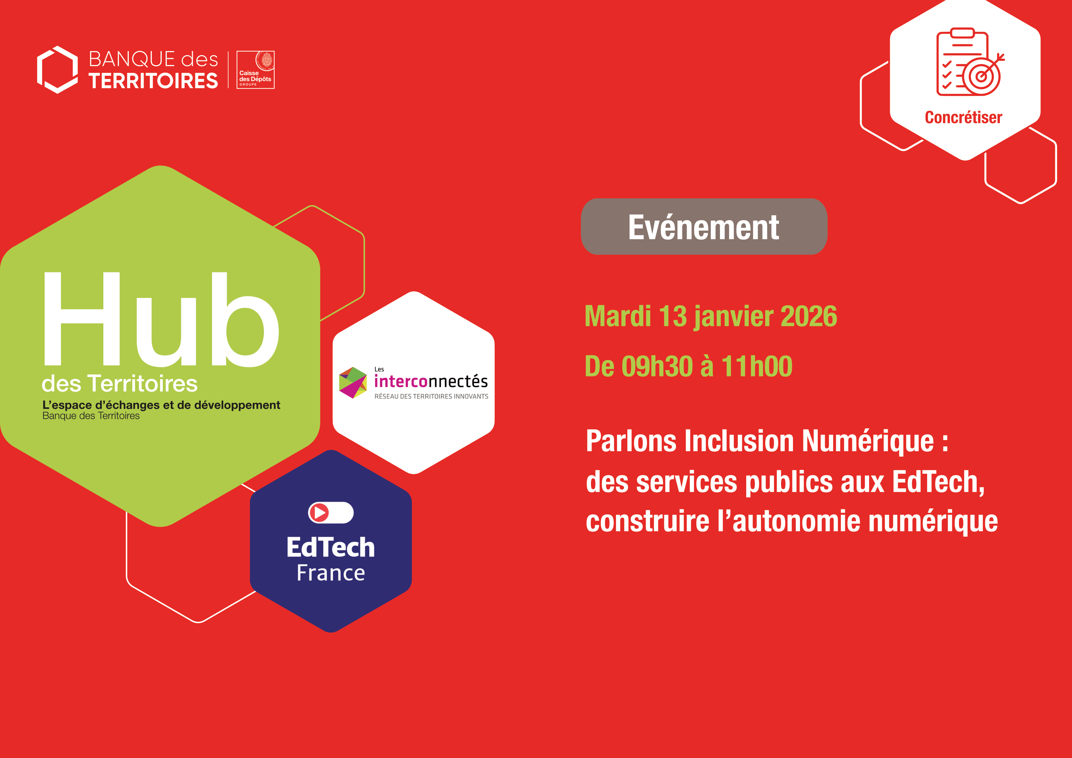 Si vous avez des difficultés pour vous inscrire, n'hésitez pas à nous contacter à l'adresse suivante : hubdesterritoires@caissedesdepots.fr