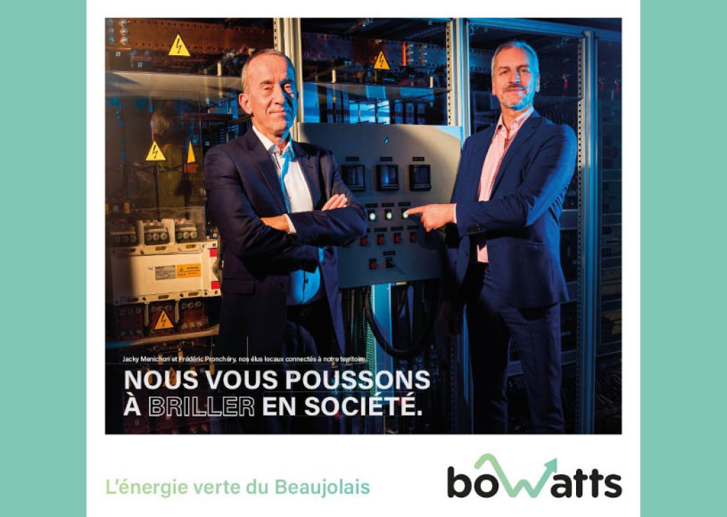 Territoire à énergie positive depuis 2016, engagée dans la rénovation énergétique des logements particuliers et des bâtiments publics et dans la production d’énergie photovoltaïque, la communauté de communes Saône Beaujolais a lancé en 2024 Bôwatts, sa marque maison d’énergie verte. Les habitants abonnés bénéficient d’un tarif très avantageux.