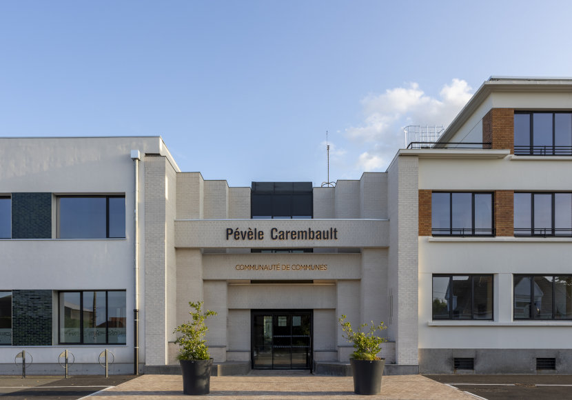 Près de Lille, la communauté de communes Pévèle Carembault a réhabilité le site industriel historique d’Agfa, pour installer une zone économique. Le nouveau siège de l'intercommunalité y a également trouvé place, dans des bâtiments rénovés écologiquement et équipés de mobilier issu du surcyclage. Le tout, sans sacrifier l’architecture de début XXe.