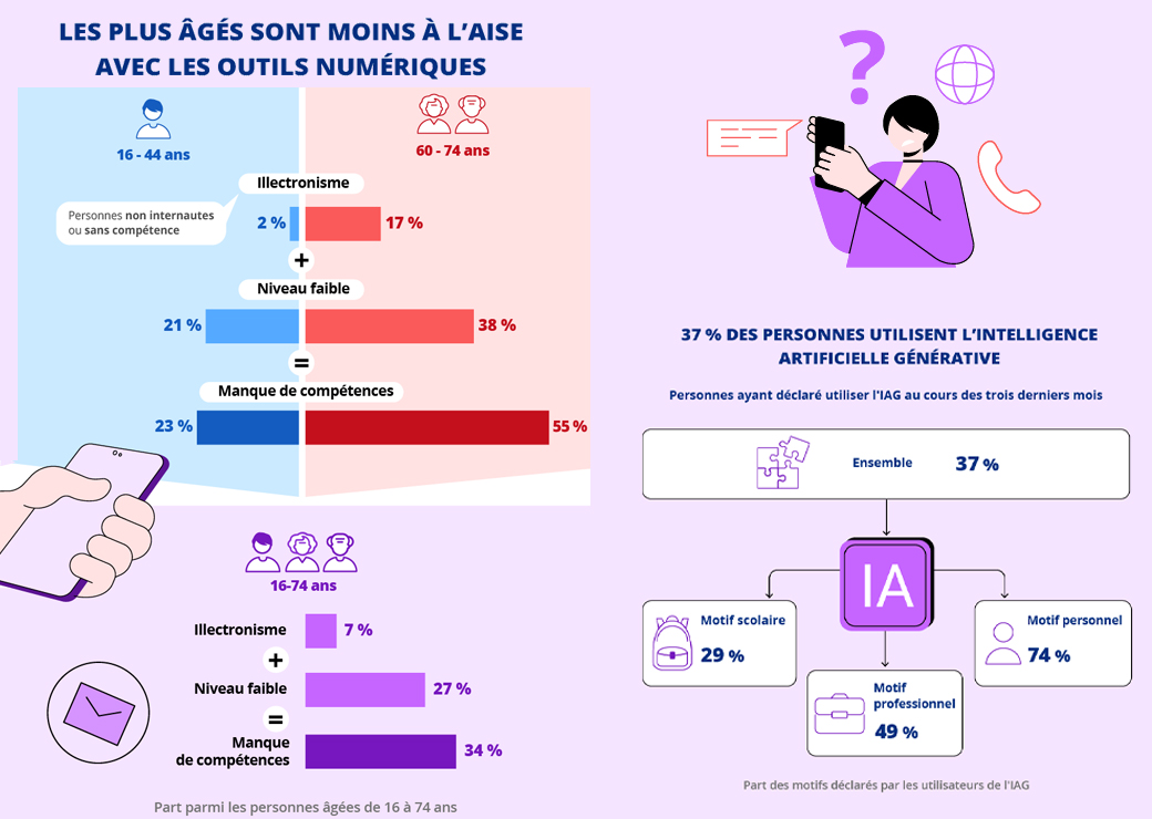 Illectronisme : 34% des 16-74 ans en difficulté numérique en 2025, l'IAG creuse les écarts