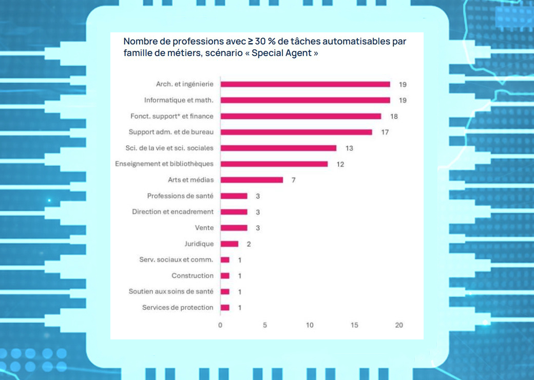 Globalement, l'étude estime que 16% des emplois en France pourraient être menacés par l'IA et disparaître, soit 5 millions d'emplois, et ce à un horizon relativement court, la France se situant dans une position médiane en Europe. "L'ordre de grandeur est macroéconomique et justifie qu'on y regarde de près", a affirmé Aurélien Duthoit, économiste secteur TIC de la Coface, co-auteur de l'étude, lors du colloque, mettant en avant le seul consensus qui ressort des études : le rythme de déploiement de l'IA. "Une fois que la technologie est disponible, le déploiement prend comme une traînée de poudre", a-t-il ajouté. Le succès quasi immédiat de ChatGPT en témoigne. "La part des entreprises qui revendiquent utiliser l'IA pour au moins une fonction est passée de 55% en 2022 à 88% l'an dernier", a encore précisé l'économiste.