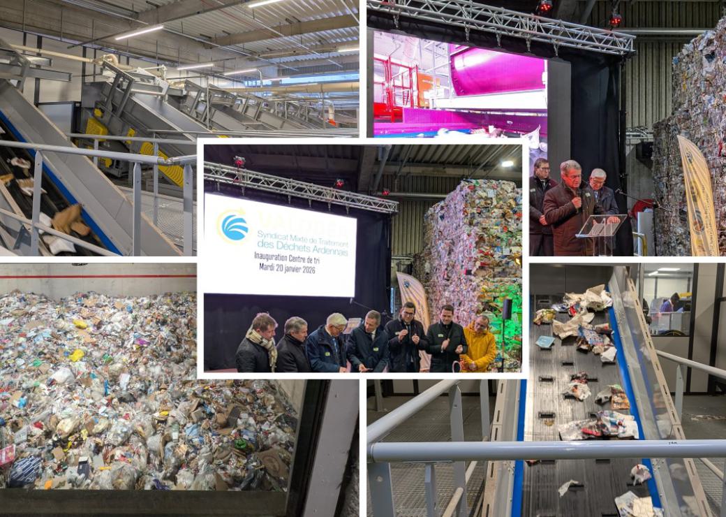 L'équipe Ardennes de la Banque des Territoires dans le Grand Est a participé à l'inauguration du nouveau centre de tri des déchets d'emballages ménagers à Charleville-Mézières. Ce centre, géré par le syndicat Valodéa, avait été gravement endommagé par un incendie en juillet 2022.