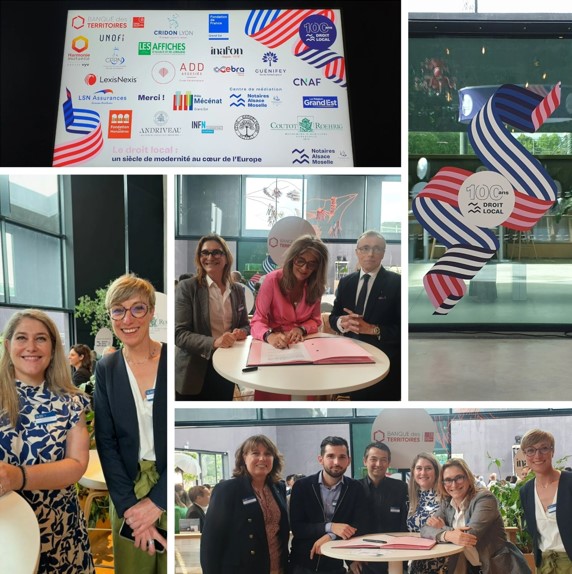 "Le droit local Alsace-Mosellan", un centenaire qui se porte si bien ! c'est à l'occasion de son anniversaire, que Magali Debatte, directrice régionale Grand Est de la Banque des Territoires a signé la convention "Notaires et Territoires" avec Maître Sabot-Bacet, présidente du Conseil Supérieur du Notariat, et Maître Ricou, président du Conseil interrégional des Notaires.