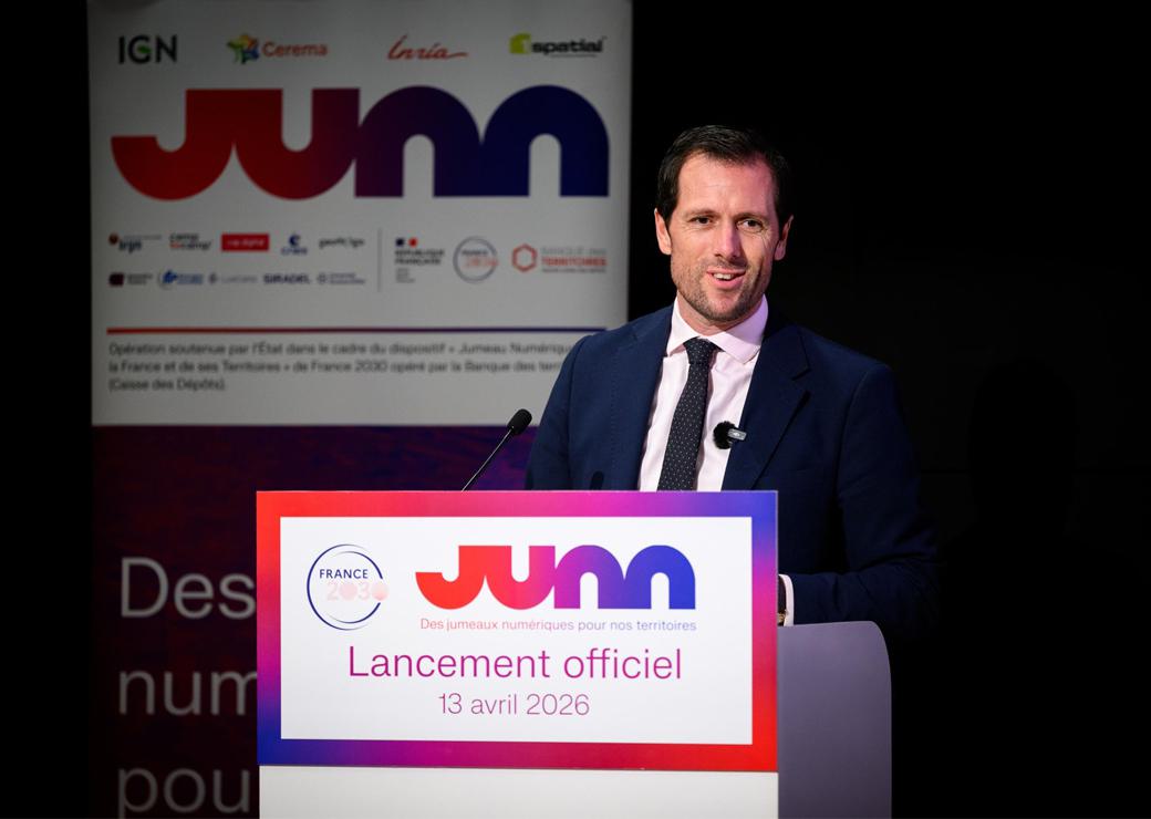 Ce 13 avril 2026, le Junn (jumeau numérique national) a été officiellement lancé par ses initiateurs : l'IGN, le Cerema et l'Inria. Le gouvernement a officialisé à cette occasion le soutien de l'État, avec 25 millions financés sur 3 ans dans le cadre de France 2030 via la Banque des Territoires. S'y ajoutent 14 millions d'euros de contributions des partenaires publics et privés. Au-delà de cet amorçage, le modèle économique sera construit progressivement à partir des retours d'expérience des collectivités. Il reposera sur une articulation entre financements publics, partenariats privés et contributions aux coûts générés par la mise en œuvre des services.