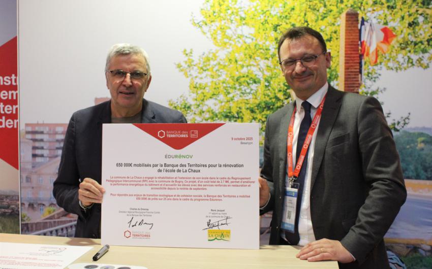 À La Chaux (25), la commune s'est engagée dans un projet ambitieux de réhabilitation et d'extension de son école qui permet d'améliorer la performance énergétique du bâtiment inauguré en septembre, tout en renforçant les services de restauration et d'accessibilité destinés aux élèves et au personnel. Un montant total de 650 000 € de prêts sur 25 ans est accordé à la commune dans le cadre du programme EduRénov.