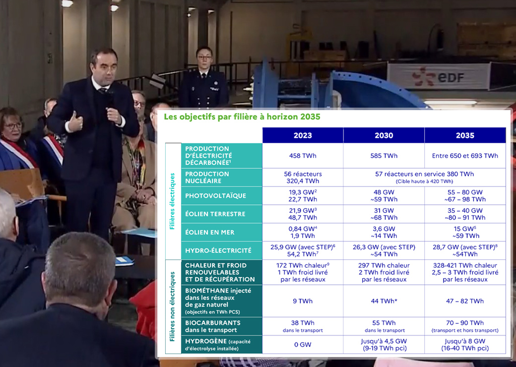 Le Premier ministre et le ministre de l'Énergie ont dévoilé, ce 12 février, dans le Jura, les grandes lignes de la troisième programmation pluriannuelle de l'énergie (PPE3), qui sera publiée par décret dans la nuit. Le texte acte le retour affirmé du nucléaire, dans la droite ligne du discours présidentiel de Belfort de 2022. Les ambitions sont en revanche revues fortement à la baisse pour les énergies renouvelables (EnR) terrestres. "Un non-sens total", estime l'Alliance pour l'énergie locale.