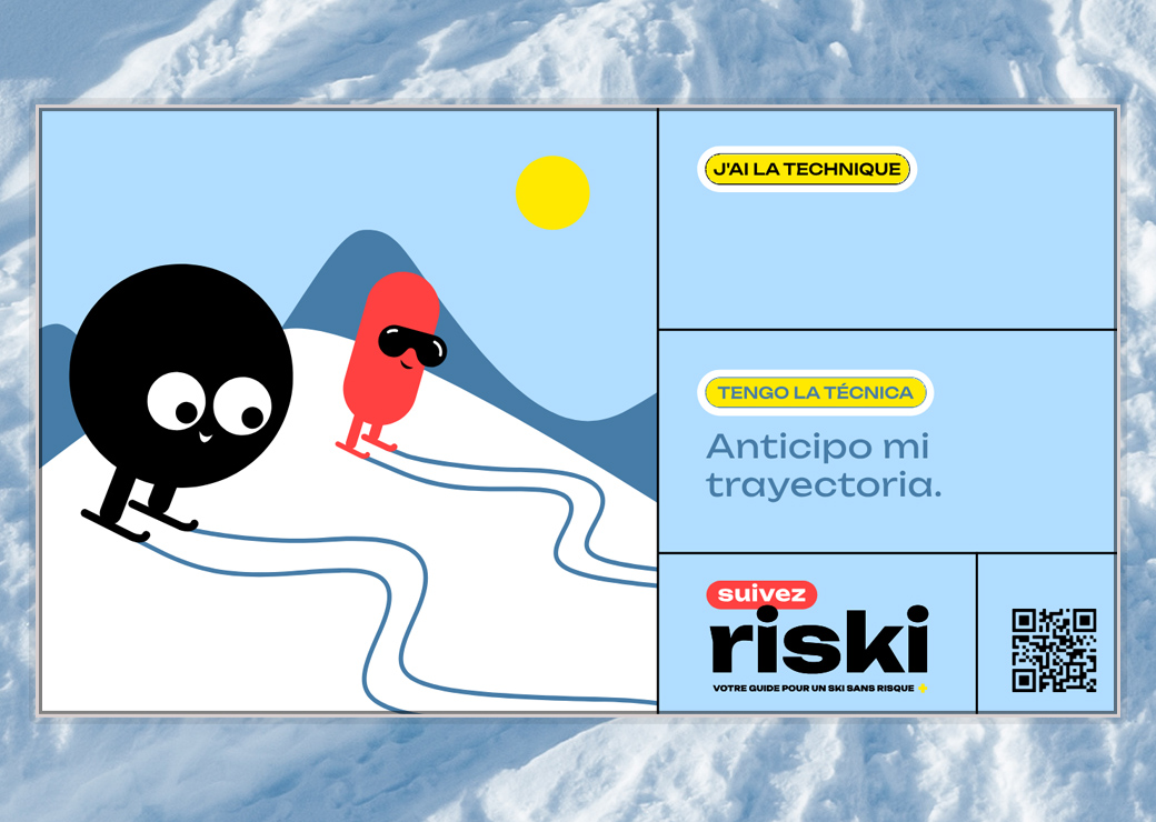 Conçue par la FNSSDS et le ministère des Sports, la campagne Riski s'articule autour de messages simples et concrets qui se déclinent à travers plusieurs thèmes : bien préparer sa journée, adapter sa pratique à son niveau, respecter les autres usagers ou tenir compte des conditions météorologiques et d'enneigement. Selon ses promoteurs, elle marque également une nouvelle étape dans la prévention en montagne avec la création d'une charte graphique nationale et des messages de sécurité uniformisés. "Pour la première fois, l'ensemble des acteurs de la montagne — stations, écoles de ski, services de secours, loueurs de matériel, hébergeurs, collectivités — s'appuieront sur une identité visuelle commune, déclinable selon les spécificités de chaque territoire", soulignent la FNSSDS et le ministère des Sports dans un communiqué commun. Les livrets de la campagne Riski ainsi que ses supports de communication sont disponibles en français/anglais et en français/espagnol.