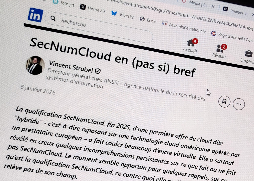 La labellisation d'offres SecNumCloud intégrant des géants américains suscite des interrogations sur les garanties présentées par ce label en matière de souveraineté. Dans un long billet sur LinkedIn, le directeur général de l'Anssi défend la solidité du label et appelle à ne pas se tromper de sujet. Parallèlement, on signalera le lancement d'une consultation de la Commission sur la souveraineté numérique et les logiciels libres.